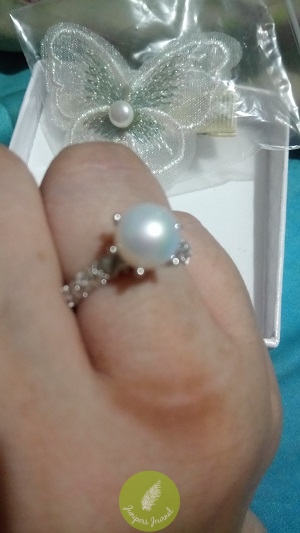 Yesterday the ring came in a box and it was much nicer than I expected. In fact, the pearl really looks quite exquisite and beautiful. It was housed in a white box together with a free gift, a pearl butterfly hair clip.