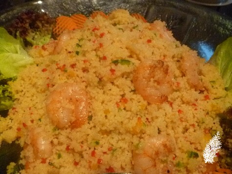 Good choices of salads and cold foods including a platter of couscous with some succulent prawns. This one tasted as good as it looked.