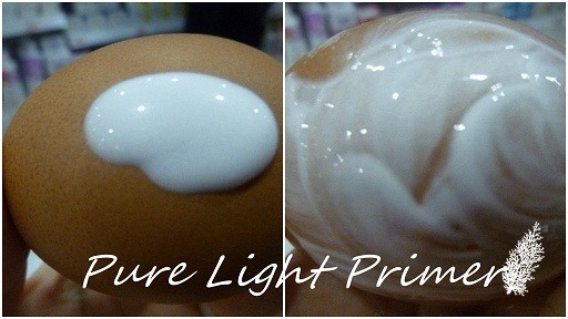 We were passed a cooked egg and the Pure Light Primer. On one side of the egg was some primer from another brand which I shall call Brand X, the primer lacked luminosity. Then we were asked to apply the Pure Light Primer on the other side of the egg and we could see the difference immediately.