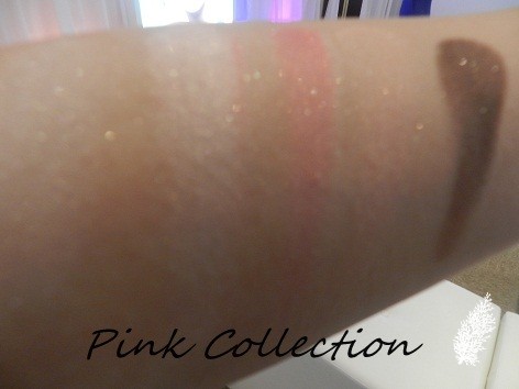 Most of the shades are quite sheer with shimmer. The darkest shade in each palette can be used as eyeliner. Each palette contains a dual-ended sponge applicator and a dual-ended sponge applicator and brush.
