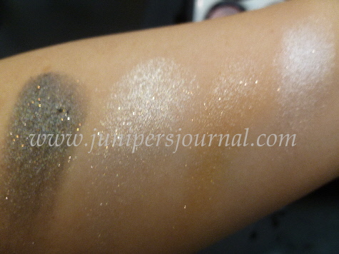 The effect is a shimmering translucent finish when applied dry and high-gloss dramatic coverage when applied wet. They swatched very well dry and I don’t think there is much of a need to use them wet unless one is going for a very intense look.