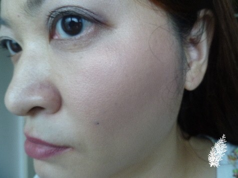 The shade is a warm coral peach with subtle gold shimmer. That slight shimmer doesn’t accentuate my pores nor does it look too shimmery. In fact, there is more of a glow than a shimmer on my cheeks and I love it as it brightens up my complexion.